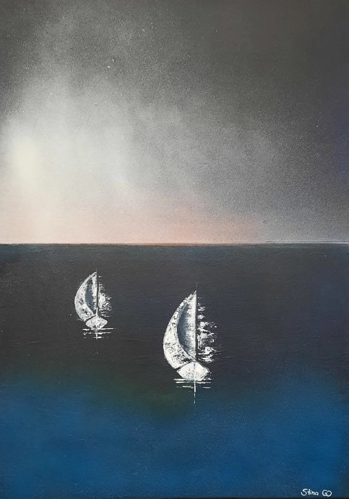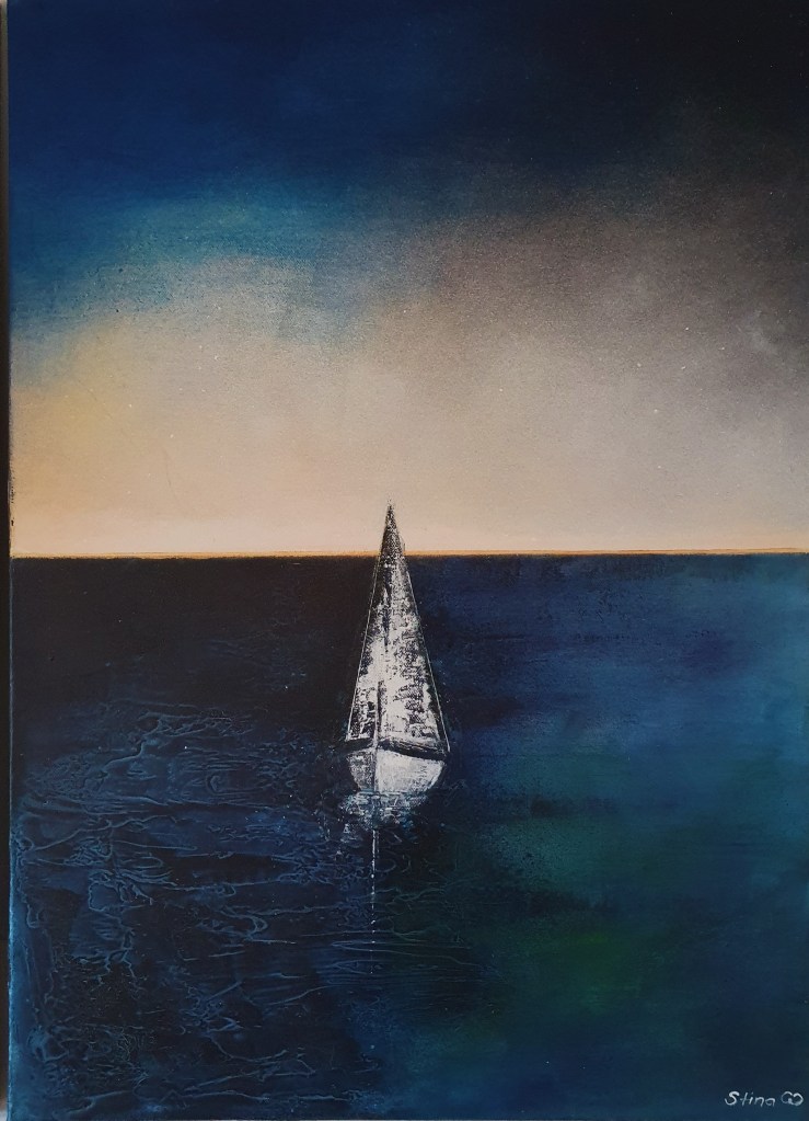 ”Foggy Sea”, 2022. Original painting. Sold.”Heading Home”, 2022. Original painting. Not available.”Companionships”, 2022. Original painting. Not available.”Sailmates”, 2021. Original painting. Sold.”Beneath the Surface”, 2021. Original painting. Sold.”Stormy Sea”, 2022. Original painting. Available.”Anchored”, 2021. Original painting. Sold.”Fellowships 2024”. Original painting. Sold.”Foggy Port”, 2024. Original painting. Available.”Abandoned Boat”, 2019. Original painting. Sold.”Abandoned Sailboat”, 2019. Original painting. Sold.”Blue Horizon”, 2018. Original painting. Sold.Flood: ”Sinking”, 2021. Original painting. Sold.Flood: ”Sea City”, 2021. Original painting. Not available.Flood: ”Searching for Land”, 2021. Original painting. Not available. Flood: ”Sea View”, 2021. Original painting. Not available.